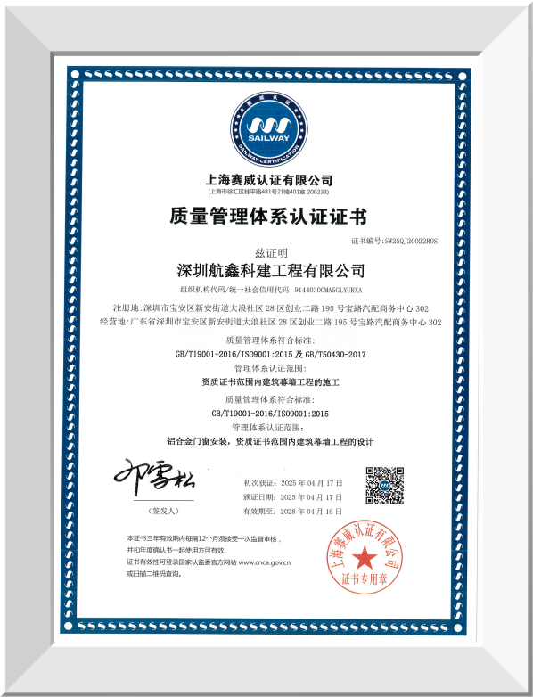 INTERNATIONAL TESTING AND CERTIFICATION 【 AAMA101/AS2047/CE/NFRC 】2